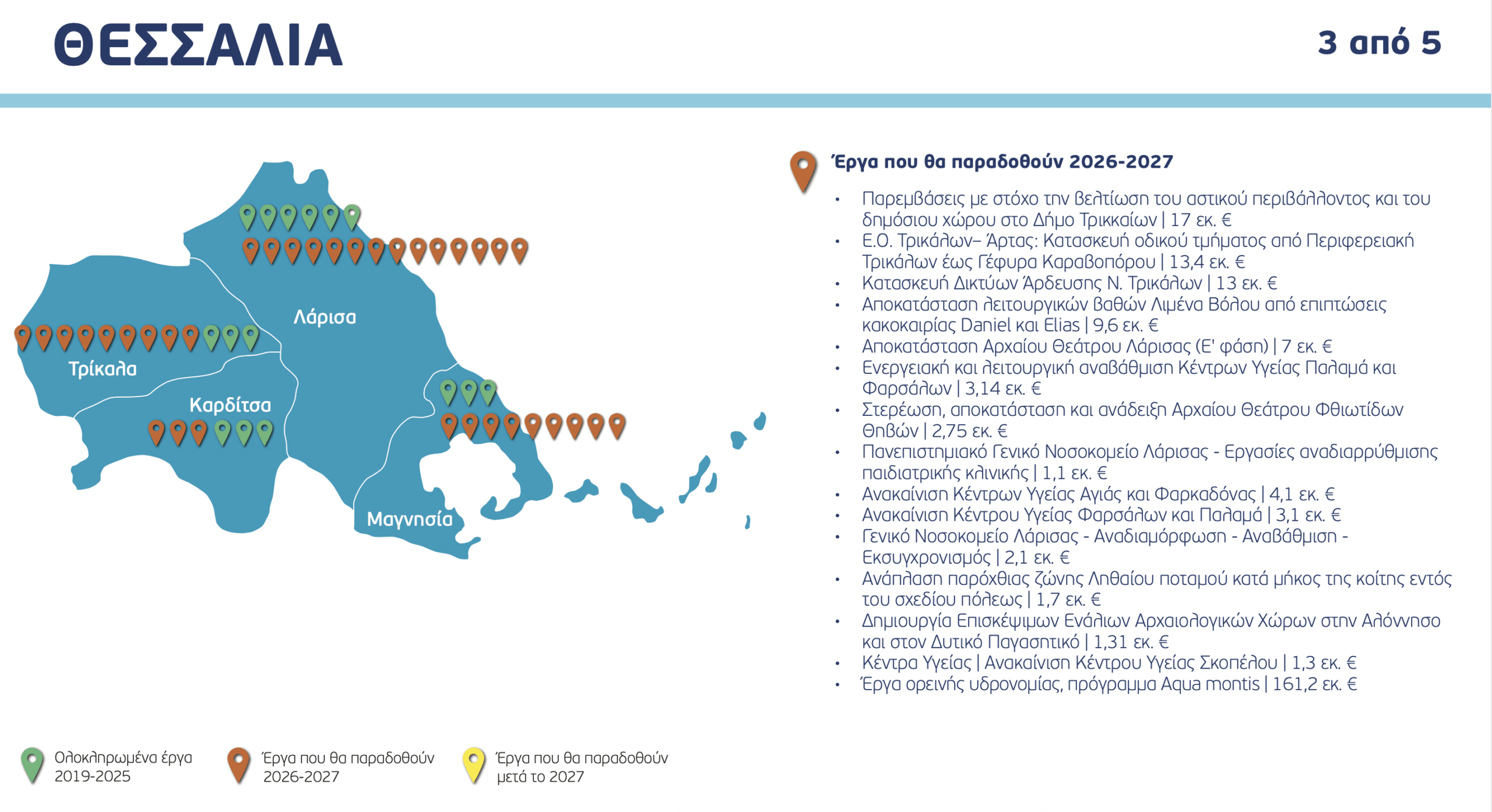 *Σύμφωνα με την παρουσίαση, στο Νομό Καρδίτσας έχουν ολοκληρωθεί τα εξής εργα το διάστημα 2019-2025: