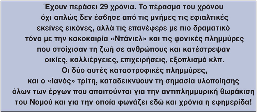 29 χρόνια μετά ήρθε ο «Ντάνιελ», ενώ είχε μεσολαβήσει τρία χρόνια πιο πριν ο «Ιανός», για να βυθίσει το νομό στις λάσπες, προκαλώντας νέες τεράστιες καταστροφές.