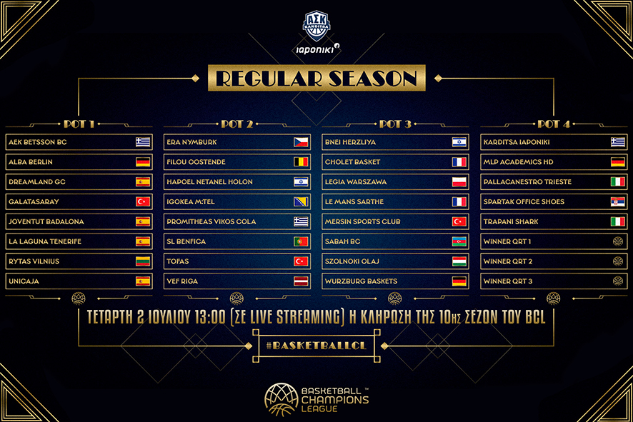 Σε live streaming θα μεταδοθεί η κλήρωση της Τετάρτης (1 μ.μ.), από το επίσημο κανάλι του Basketball Champions League στο Youtube. Οι φίλαθλοι μπορούν να παρακολουθήσουν την κλήρωση, τόσο για τα προκριματικά, όσο και για τη φάση των Ομίλων ζωντανά, χρησιμοποιώντας το σύνδεσμο:
