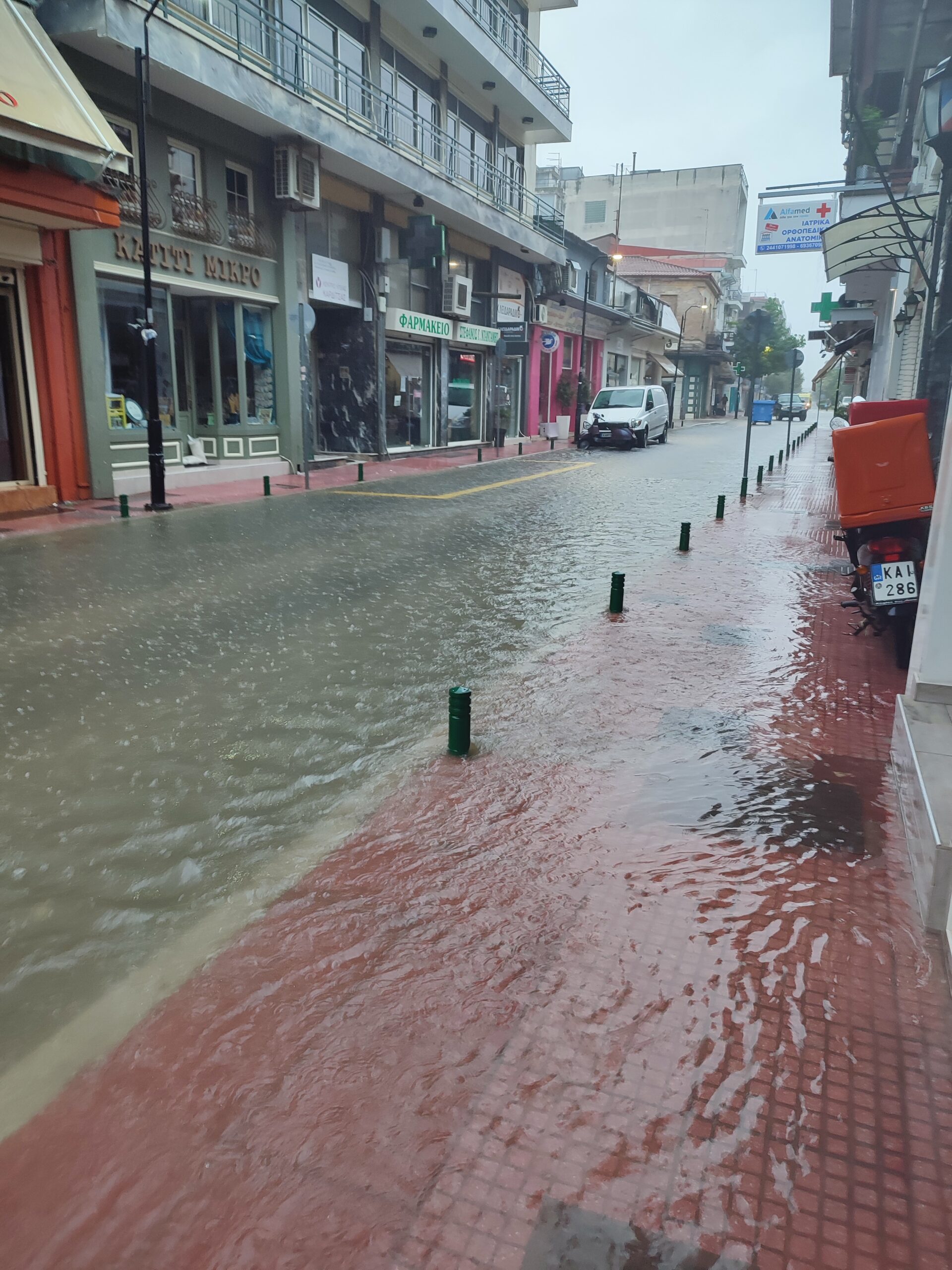 Στον κεντρικό πεζόδρομο, το νερό όλο και περισσότερο δυσκολεύει τη διέλευση των πεζών, ενώ αρκετοί δρόμοι κρίνονται πλέον μη προσβάσιμοι με όχημα. Σε αρκετές επιχειρήσεις, ιδιοκτήτες και προσωπικό επέλεξαν να θωρακίσουν βιτρίνες και πόρτες με σφραγιστικά υλικά.