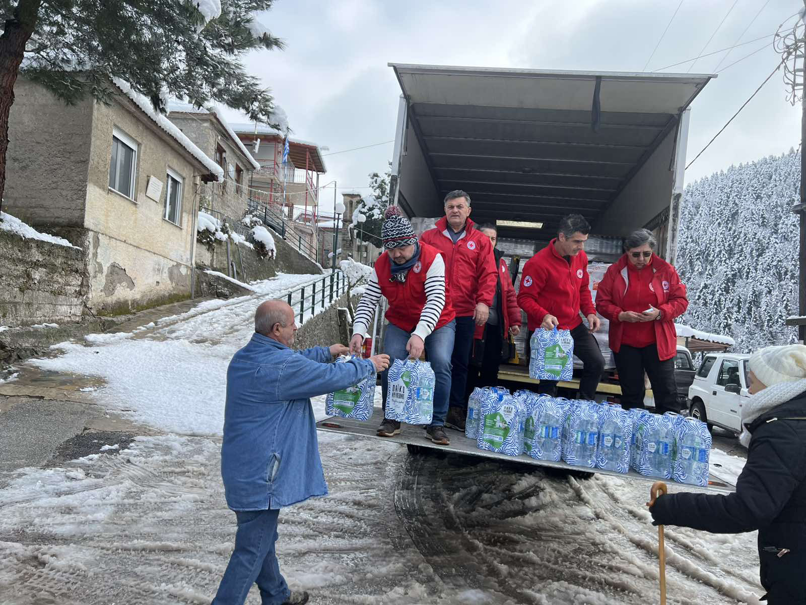 Πέντε παλέτες με εμφιαλωμένα νερά για πόση πρόσφερε ο Ερυθρός Σταυρός στις κοινότητες Βαθυλάκκου και Αηδονοχωρίου για τις ανάγκες των κατοίκων τους. Οπως είναι γνωστό οι κάτοικοι των δυο κοινοτήτων από την κακοκαιρία Ντανιελ και μετά δεν μπορούν να χρησιμοποιήσουν το νερό που φτάνει στα σπίτια τους προς πόση καθώς έχει κριθεί ακατάλληλο.