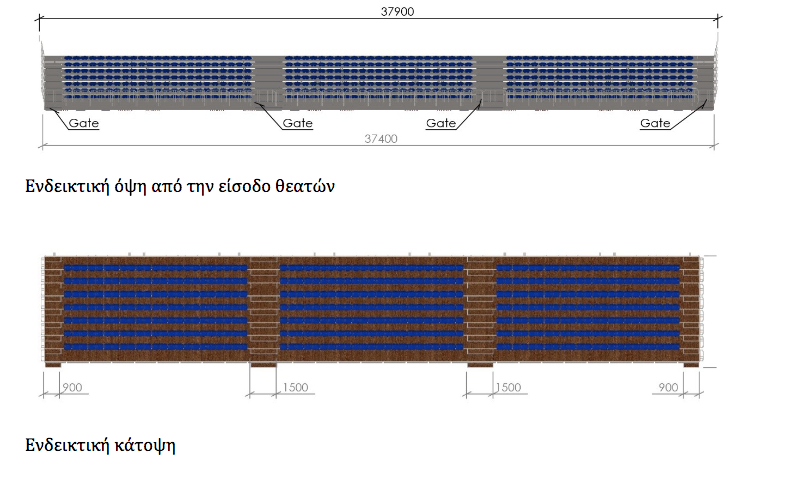 Υπενθυμίζεται ότι σύμφωνα με τη μελέτη, η πτυσσόμενη κερκίδα που θα έχει τη δυνατότητα αναδίπλωσης με ηλεκτρικό μηχανισμό θα τοποθετηθεί κατά μήκος του αγωνιστικού χώρου απέναντι από τους πάγους των ομάδων.