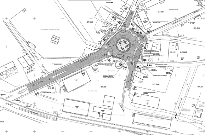 Στον κυκλικό κόμβο συμβάλλουν 4 κλάδοι: