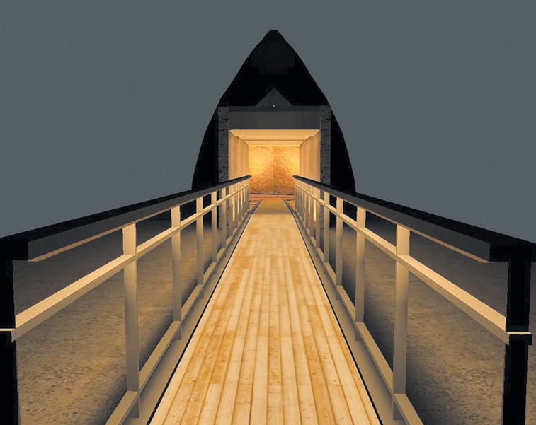 Φωτορεαλιστική απεικόνιση της πρόσβασης και της εισόδου στο ταφικό μνημείο