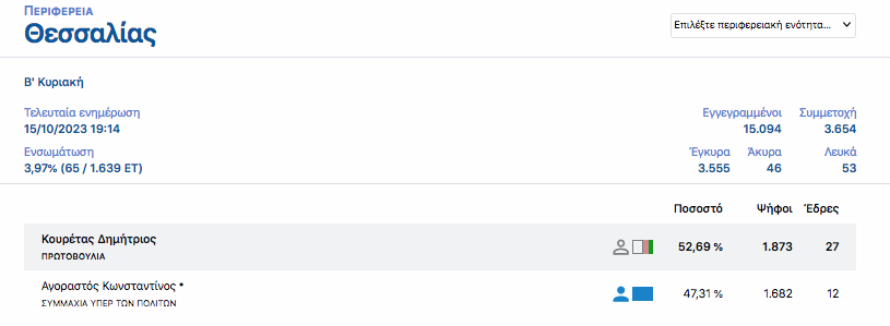 Καρδίτσα Προβάδισμα Κουρέτα στο 3,97% των αποτελεσμάτων σε επίπεδο Περιφέρειας 15 Οκτωβρίου 2023, 7:20 μμ FacebookTwitterWhatsAppLinkedin Τελευταίες Ειδήσεις Σήμερα Ακολούθησε την εφημερίδα ΝΕΟΣ ΑΓΩΝ στο Google News! Όλες οι εξελίξεις στην περιοχή της Καρδίτσας και ευρύτερα της Θεσσαλίας
