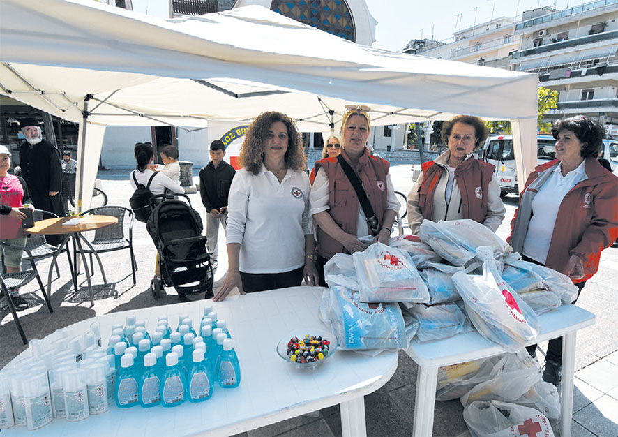 Εθελοντές του Ερυθρού Σταυρού παρέδωσαν στη διοίκηση του συλλόγου αλλά και στα ίδια τα παιδιά τσάντες με σχολικά είδη και αντισηπτικά.