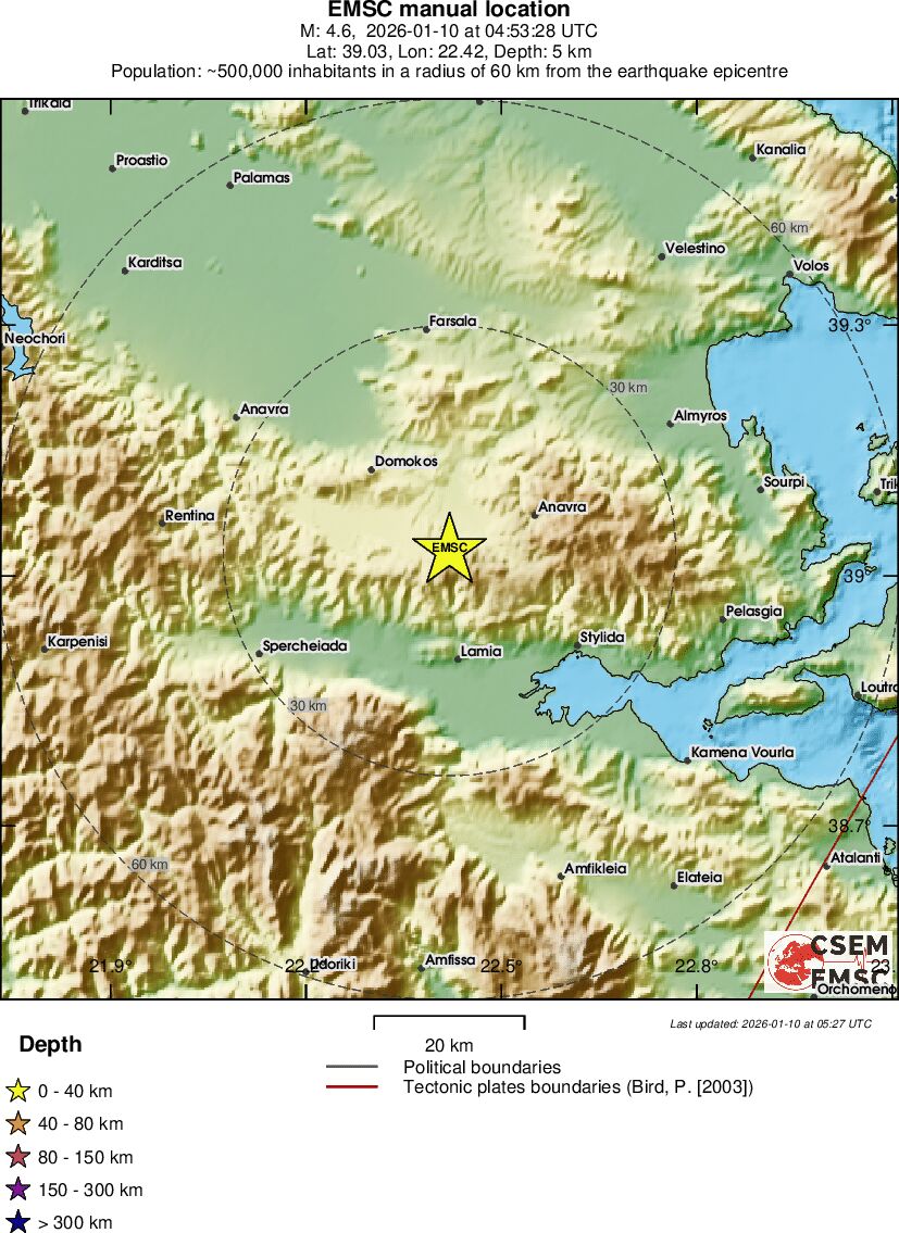 Σεισμός μεγέθους 4,4 Ρίχτερ σημειώθηκε λιγα λεπτά πριν τις 7 το πρωί του Σαββάτου κοντά στη Λαμία, έξω από την Ξυνιάδα και έγινε ιδιαίτερα αισθητός στην Καρδίτσα.