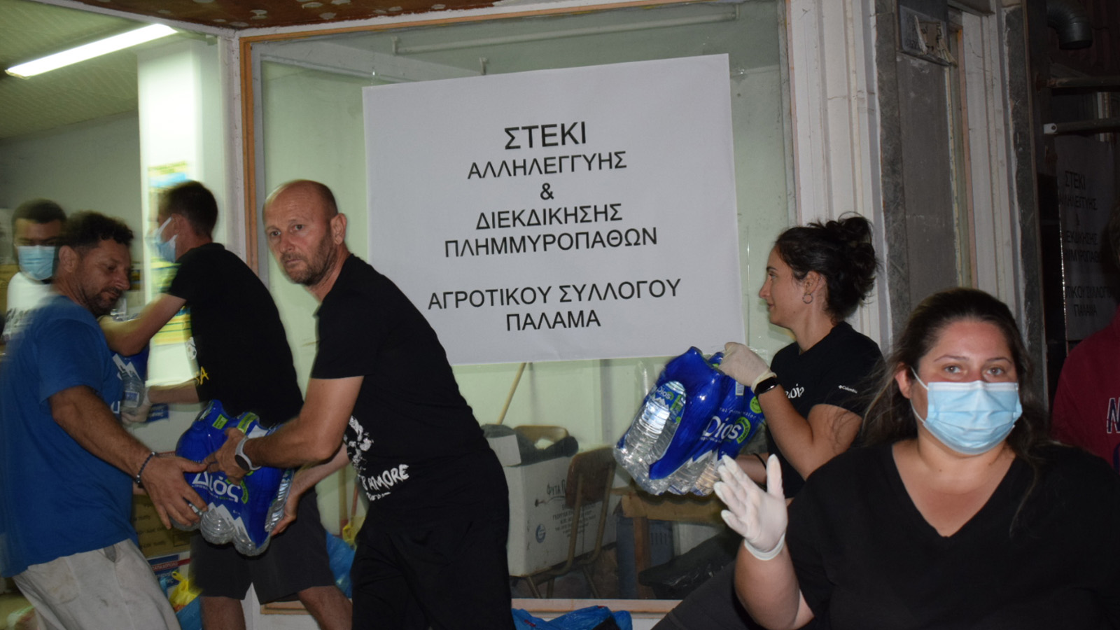 Την ίδια ώρα οι αγωνιστές αγρότες πήραν την πρωτοβουλία και έστησαν Στέκι Αλληλεγγύης και Διεκδίκησης Πλημμυροπαθών στα γραφεία του Αγροτικού Συλλόγου Παλαμά, την «καρδιά» του αγροτικού κινήματος.