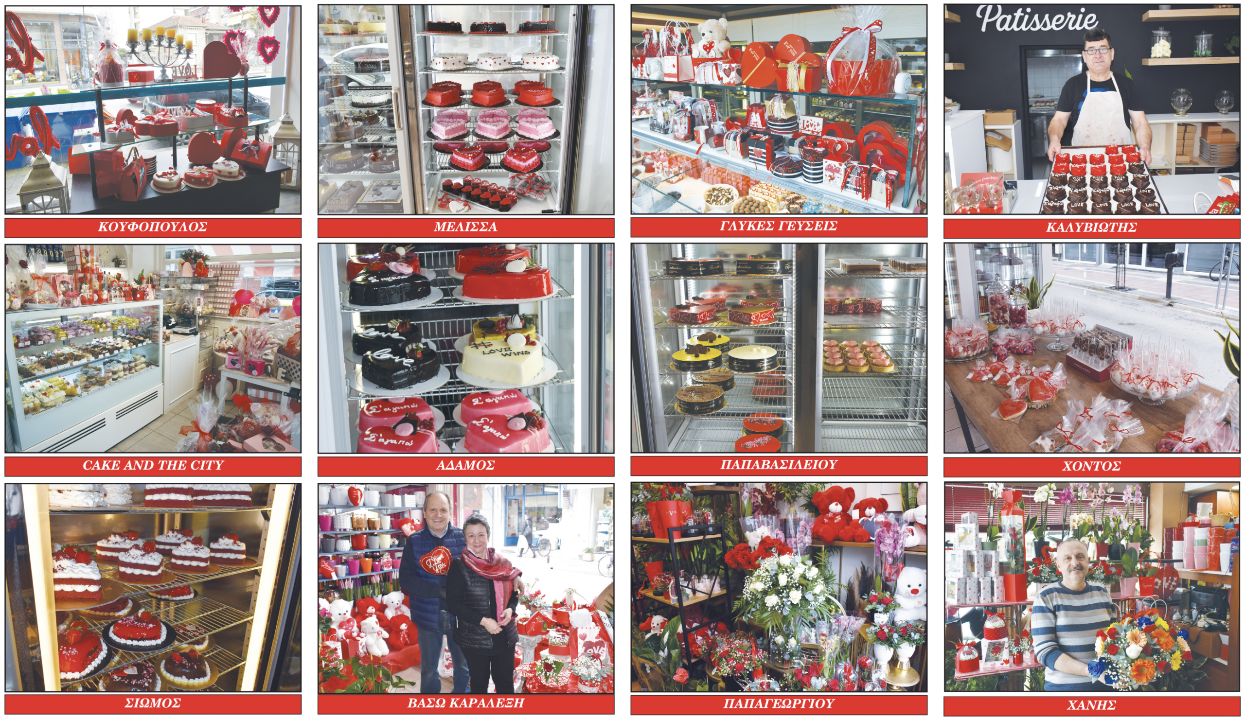 Αντίστοιχη είναι η εικόνα και στα ζαχαροπλαστεία, όπου οι βιτρίνες έχουν «πλημμυρίσει» με τούρτες σε σχήμα καρδιάς, red velvet δημιουργίες και σοκολατάκια.