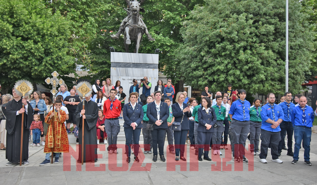 Άγημα του Κέντρου Εκπαίδευσης Στρατονομίας απέδωσε τιμές και η φιλαρμονική του Δήμου Καρδίτσας παιάνιζε χαρμόσυνα. Οι πιστοί με δάκρυα στα μάτια έραιναν με ροδοπέταλα την πομπή που σχηματίστηκε και η οποία σταμάτησε αρχικά στην κεντρική πλατεία όπου έγινε η επίσημη υποδοχή στην πόλη από τον Δήμαρχο Καρδίτσας κ. Β. Τσιάκο.