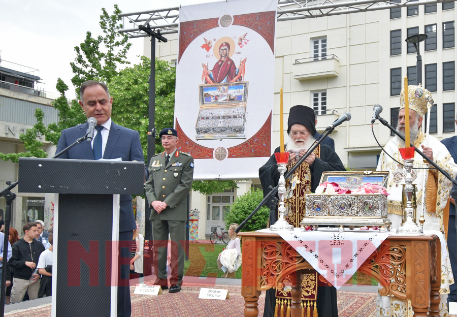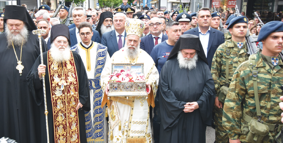 Στη συνέχεια μέσω του πεζοδρόμου κατέληξε στον Μητροπολιτικό Ναό των Αγίων Κωνσταντίνου και Ελένης όπου η Αγία Ζώνη θα παραμείνει μέχρι το πρωί της Πέμπτης 15 Μαΐου προς προσκύνηση των πιστών.