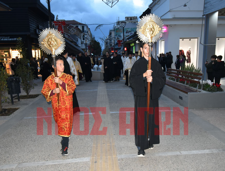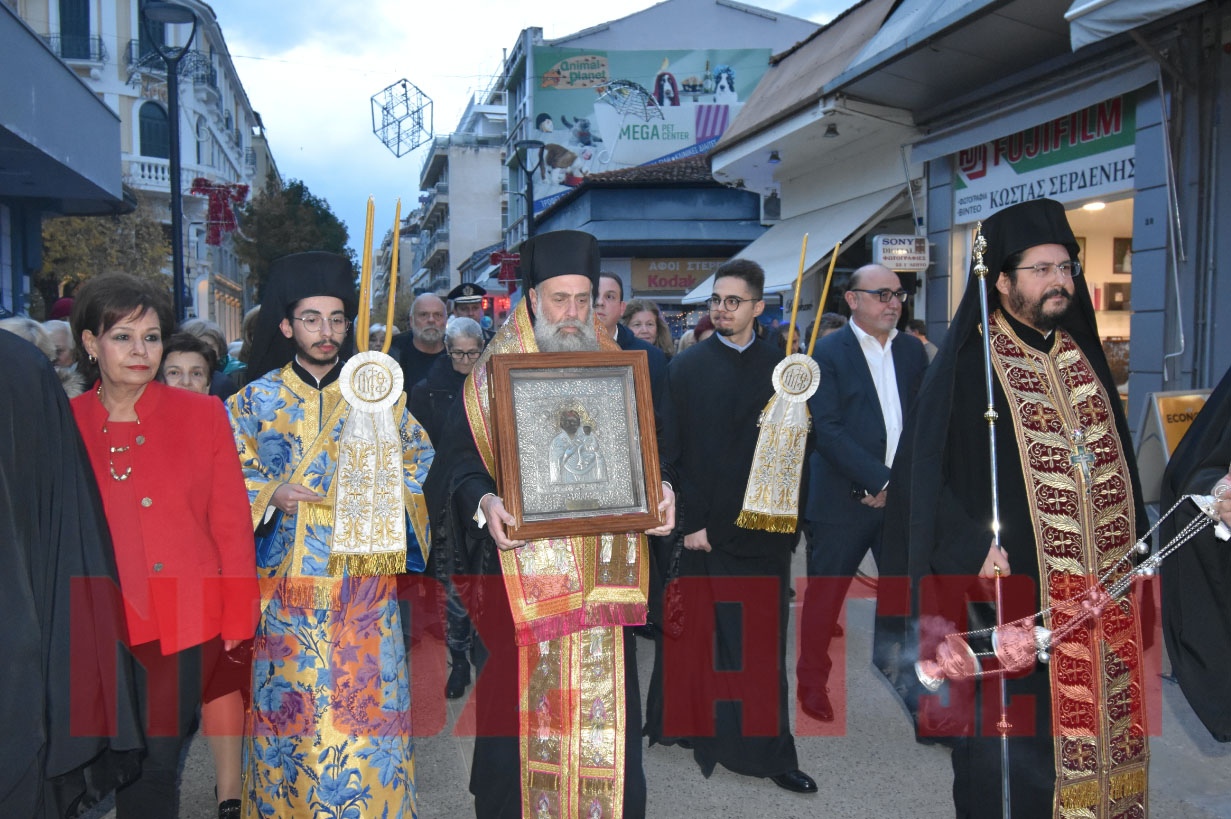 Την εικόνα μετέφερε από την ιερά μονή Σπηλιάς ο ηγούμενος της μονής, Αρχιμανδρίτης Νεκτάριος και την υποδέχτηκε στη διασταύρωση των οδών Καραϊσκάκη και Μπλατσούκα, ο Σεβασμιώτατος Μητροπολίτης Θεσσαλιώτιδος κ. Τιμόθεος πλαισιωμένος από κληρικούς και δεκάδες πιστούς.