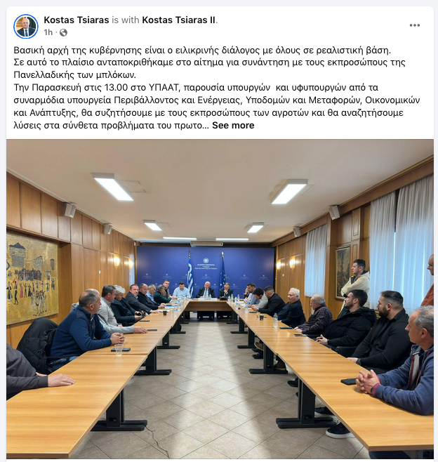 Σε αυτό το πλαίσιο ανταποκριθήκαμε στο αίτημα για συνάντηση με τους εκπροσώπους της Πανελλαδικής των μπλόκων.
