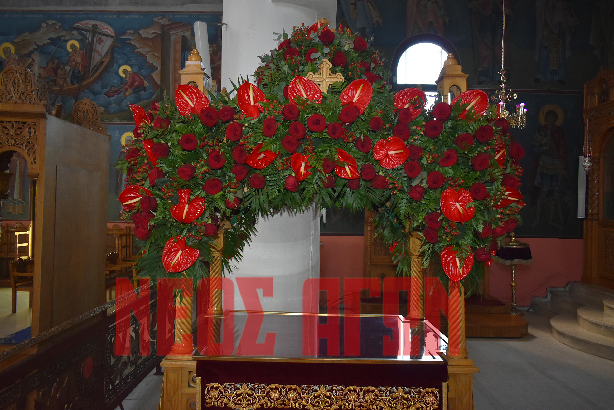 Το χρώμα και η ευωδιά των ανοιξιάτικων λουλουδιών αναδύονται από του Επιταφίους που στολίστηκαν για να δεχθούν το Σώμα του Κυρίου.
