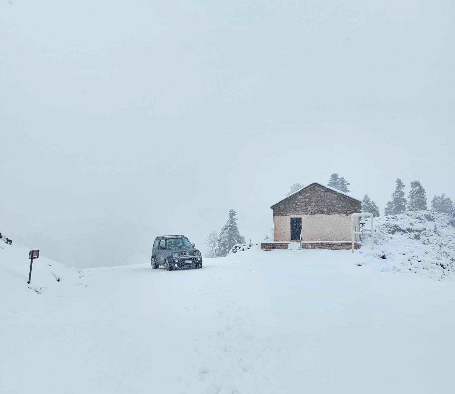Στους 20 πόντους έχει φθάσει το χιόνι στην περιοχή πάνω από τον Καρβασαρά στα 1.600 μ. υψόμετρο .