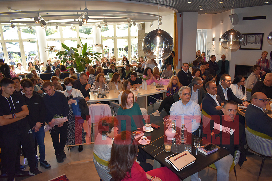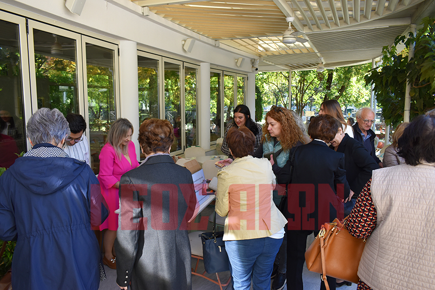 Η κ. Θέου συνομίλησε με το κοινό και υπέγραψε αντίτυπα του βιβλίου της ενώ συγκινητική ήταν η παρουσία μαθητών της που της πρόσφεραν λουλούδια.