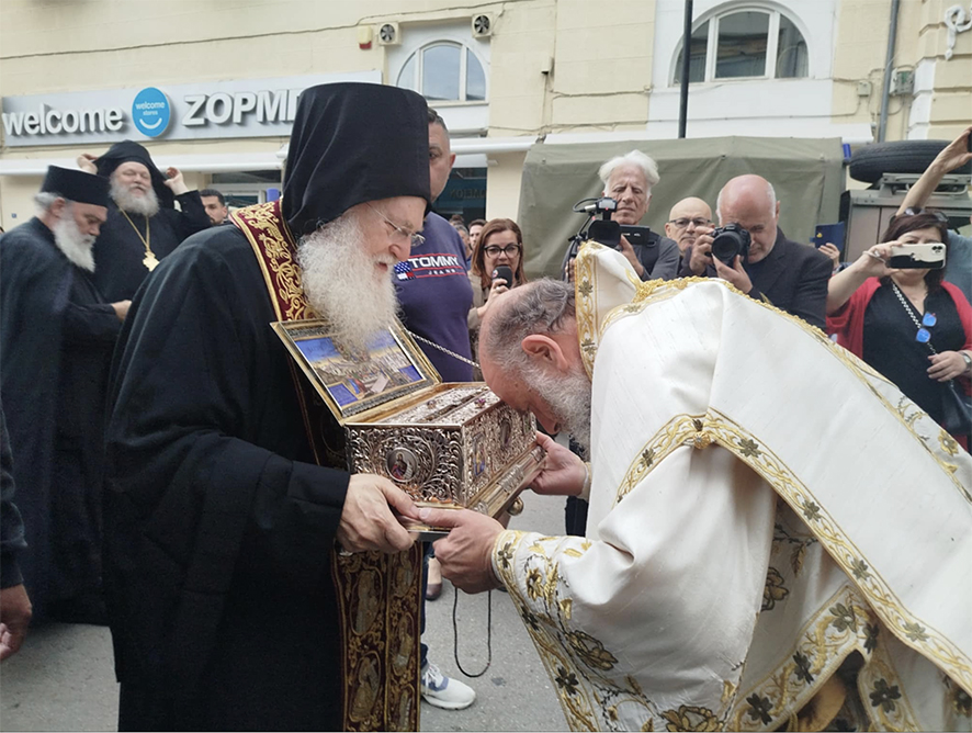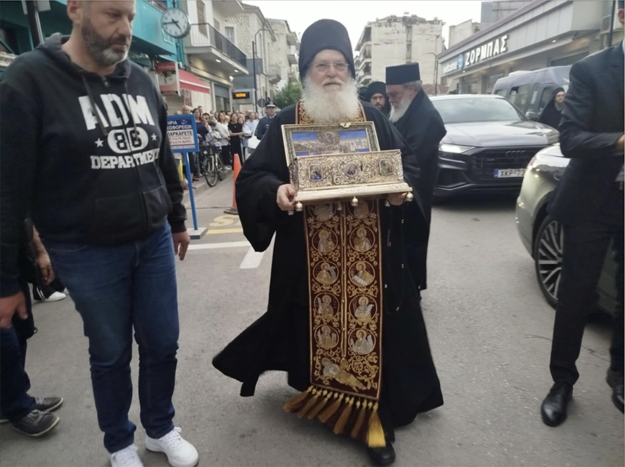 -Σας συναντώ στην Καρδίτσα όπου κομίσατε την Αγία Ζώνη. Αναρωτιέμαι πώς είναι να συνοδεύετε αυτό το σπουδαίο θρησκευτικό κειμίλιο, να είστε εσείς ο φρούρος, αν μου επιτρέπεται ο όρος, ενός ιερού συμβόλου;