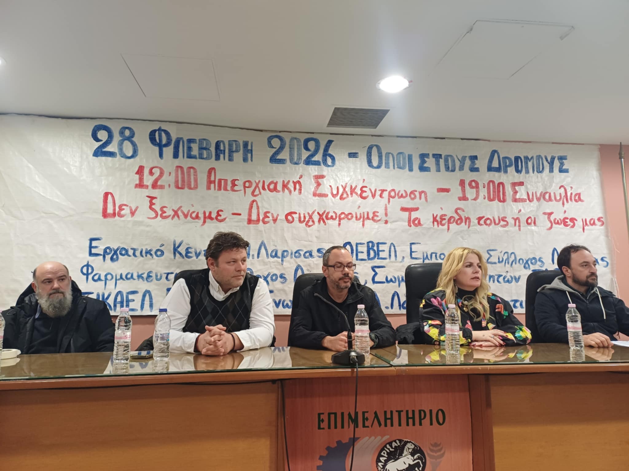 Σύσκεψη φορέων πραγματοποιήθηκε χθες το απόγευμα, στην ισόγεια αίθουσα του Επιμελητήριο Λάρισας, στην οδό Παπακυριαζή 44, με αντικείμενο την προετοιμασία της μεγάλης απεργιακής συγκέντρωσης του Σαββάτου 28 Φεβρουαρίου στη Λάρισα.