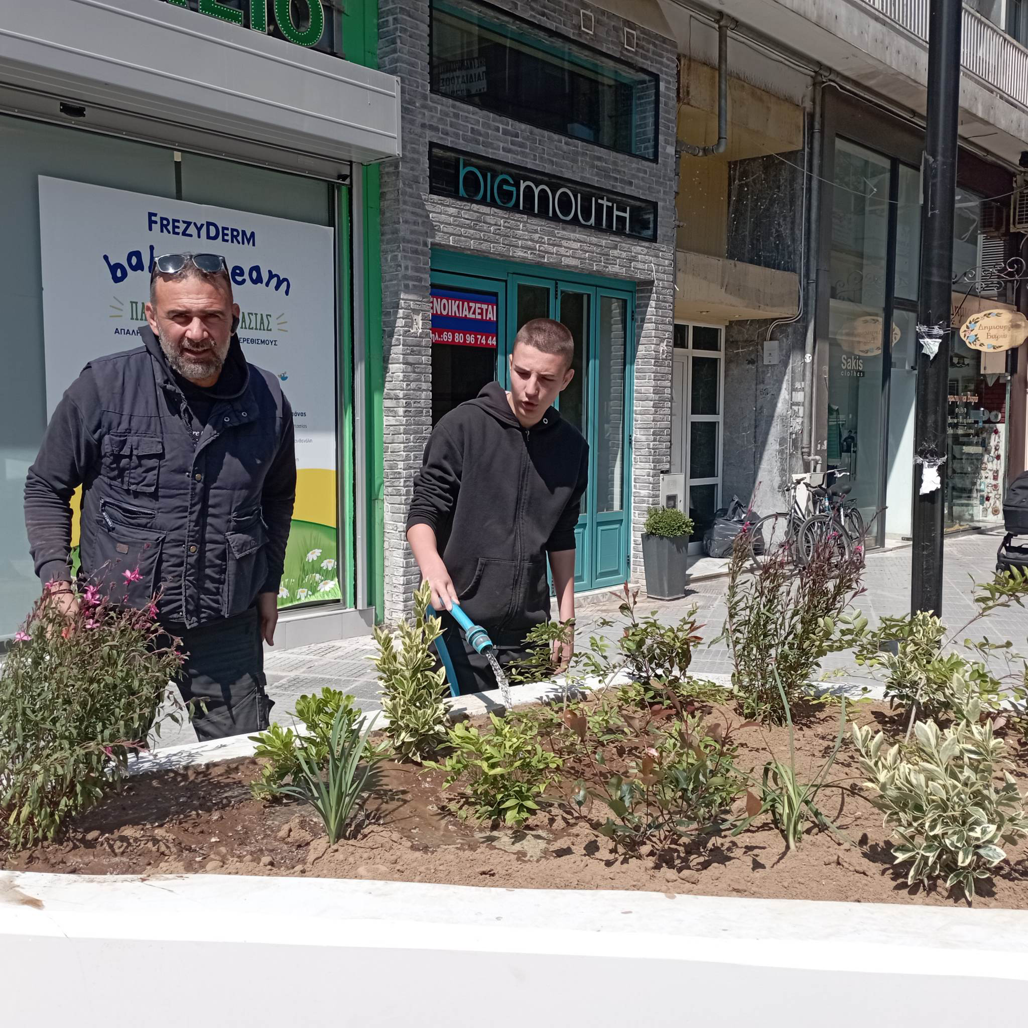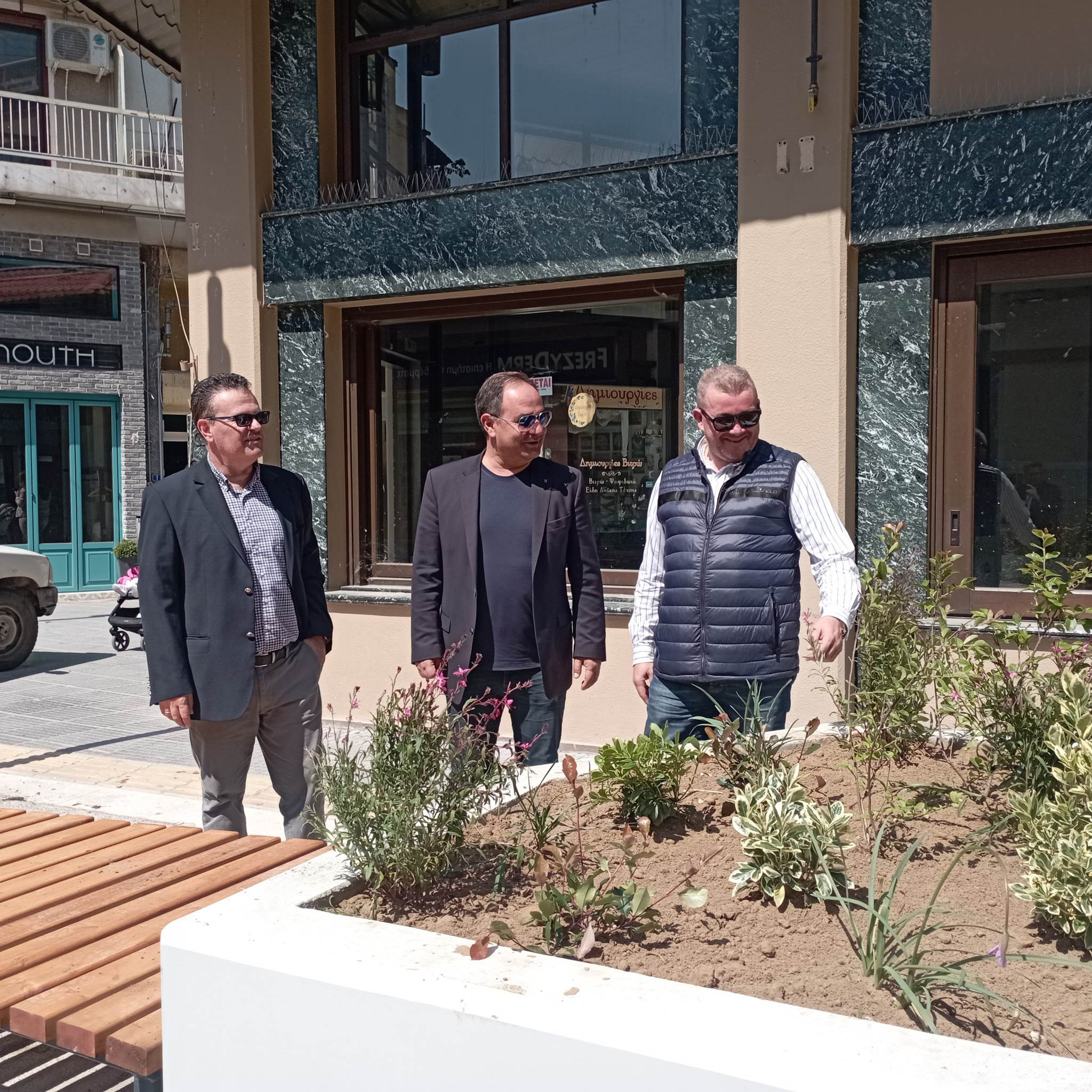 Χθες τα συνεργεία του αναδόχου ολοκλήρωσαν τη φύτευση λουλουδιών στις ζαρντινιέρες ενώ ολοκληρώθηκε και η τοποθέτηση του αστικού εξοπλισμού. Τα ξύλινα καθιστικά δίνουν μια άλλη αίσθηση στον δρόμο στον οποίο κυριαρχούν πιο ψυχρά υλικά.