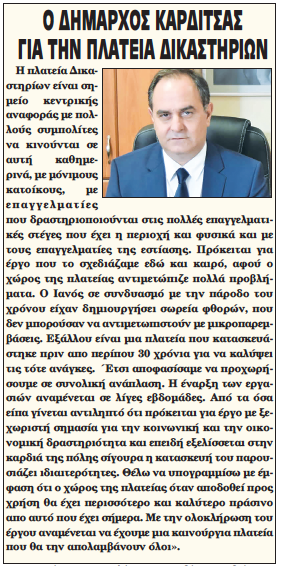 Η Πλατεία Δικαστηρίων βρίσκεται στο κέντρο της πόλης της Καρδίτσας και αποτελεί μια από τις σημαντικότερες ιστορικά πλατείες της πόλης. Περιβάλλεται από τρεις πολυσύχναστους δρόμους.