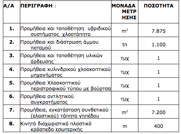 άρθρο 7:προμήθεια, εγκατάσταση συνθετικού (ελαστικού) τάπητα γηπέδου,