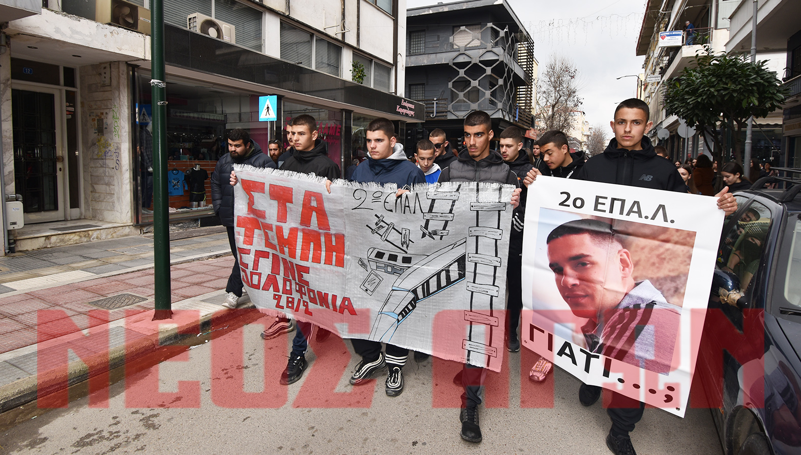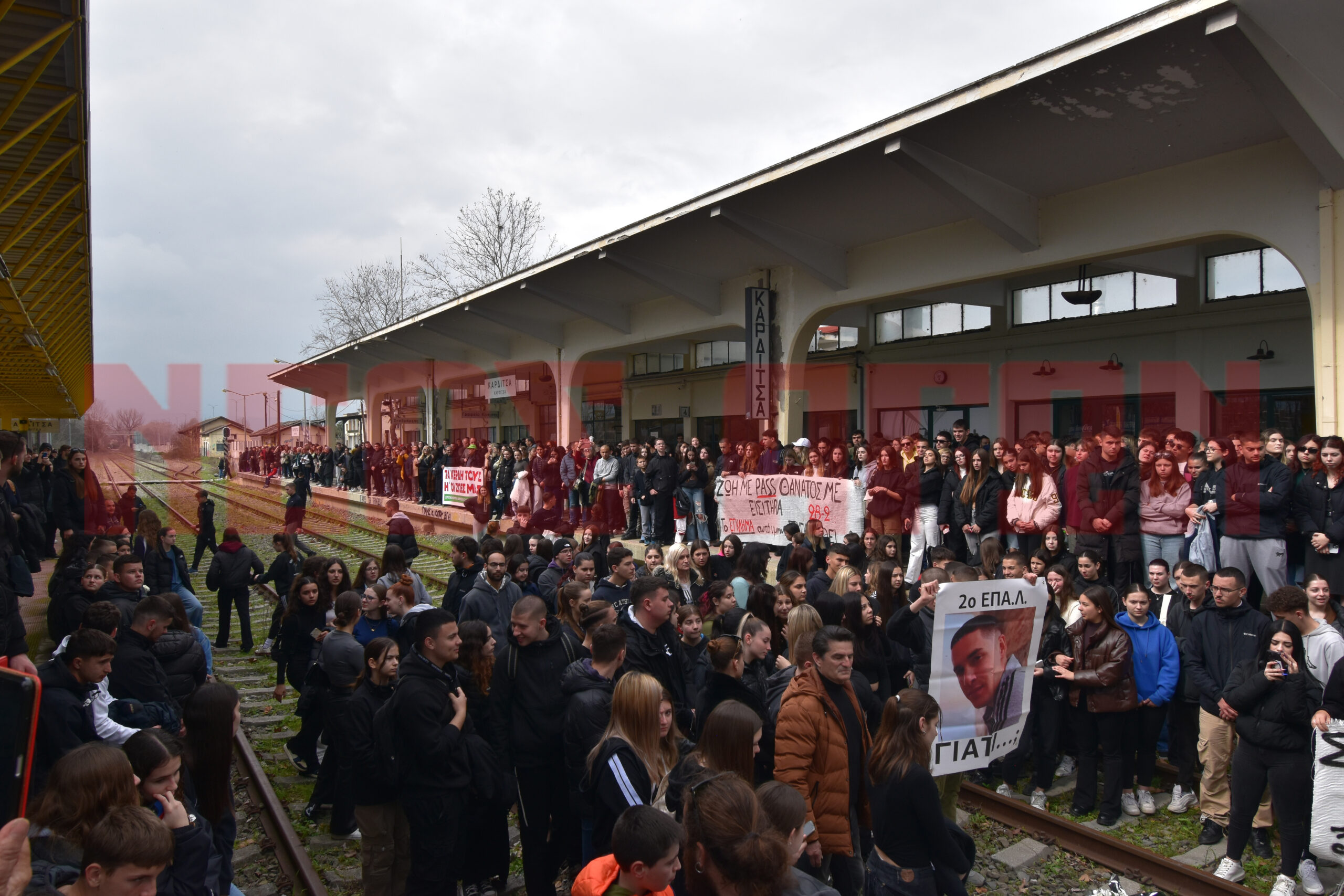 Μετά το τέλος των ομιλιών, η μεγαλειώδης απεργιακή συγκέντρωση συνεχίστηκε με πορεία προς τον Σιδηροδρομικό Σταθμό Καρδίτσας. Καθ’ όλη τη διάρκεια της πορείας, κυριάρχησαν συνθήματα με φανερό θυμό για τις διαχρονικές παραλείψεις στις κρατικές υποδομές, για τις ευθύνες του κράτους και των κυβερνήσεων έως και σήμερα για ένα προβληματικό και μη ασφαλές σιδηροδρομικό δίκτυο. Πρωτοστάτες οι μαθητές που δεν ξεχνούν τους αδικοχαμένους Καρδιτσιώτες, Βάιο Βλάχο και Τάσο Κουτσόπουλο, που τα όνειρά τους διακόπηκαν απότομα με τον πιο οδυνηρό τρόπο.