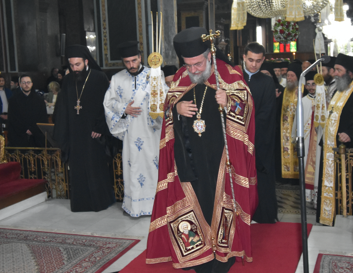 Εν συνεχεία, πολυαρχιερατική Θεία Λειτουργία προεξάρχοντος του Σεβασμιωτάτου Μητροπολίτου Ύδρας, Σπετσών και Αιγίνης κ. Εφραίμ και συλλειτουργούντων του Σεβασμιωτάτου Μητροπολίτου Σταγών και Μετεώρων κ. Θεοκλήτου, του Σεβασμιωτάτου Μητροπολίτου Φθιώτιδος κ. Συμεών, του Σεβασμιωτάτου Μητροπολίτου Γόρτυνος και Μεγαλοπόλεως κ. Νικηφόρου, του Σεβασμιωτάτου Ποιμενάρχου μας κ. Τιμοθέου, μετά των Ιερέων και Διακόνων.