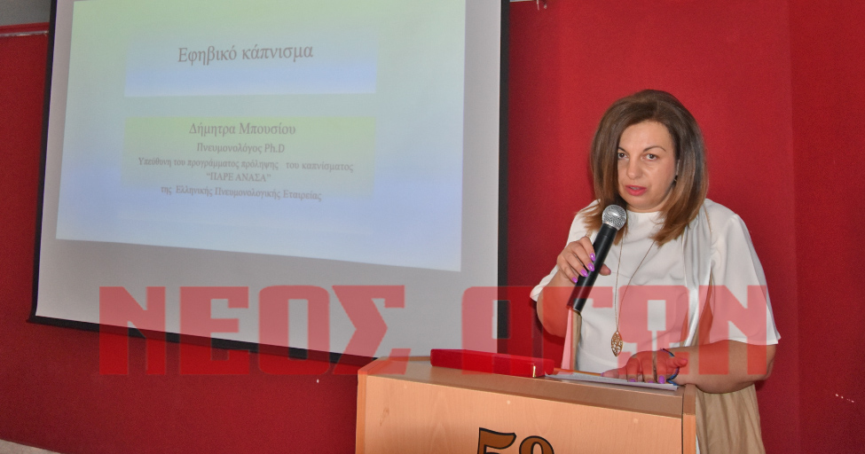 Πιο αναλυτικά, σε δηλώσεις της στο «Νέο Αγώνα» η κ. Δήμητρα Μπουσίου, Πνευμονολόγος και Υπεύθυνη του προγράμματος «Πάρε Ανάσα» της ΕΠΕ, μίλησε για το κάπνισμα, ένα από τα σημαντικότερα προβλήματα της δημόσιας Υγείας, το εφηβικό κάπνισμα είναι η πρώτη πράξη μιας τραγωδίας δυνητικά αποφεύξιμης γιατί το σύνολο των συστηματικών καπνιστών το έχει ξεκινήσει πριν την ηλικία που μπορούσε νόμιμα να προμηθευτεί τσιγάρα. Σχεδόν το 99% των καπνιστών ξεκινάει το κάπνισμα πριν την αποφοίτηση από την τρίτη Λυκείου. Άρα είναι πολύ σημαντικό να εστιάσουμε στο θέμα του εφηβικού καπνίσματος εξάλλου η πρόληψη και η διακοπή του αποτελούν ένα ευρέως προωθημένο στόχο της δημόσιας Υγείας. Τα τελευταία χρόνια ενώ έχει μειωθεί σημαντικά τις τελευταίες δεκαετίες η χρήση συμβατικών τσιγάρων, έχουν αυξηθεί τα νεότερα καπνικά προϊόντα, όπως η χρήση ηλεκτρονικού τσιγάρου», σημείωσε μεταξύ άλλων.