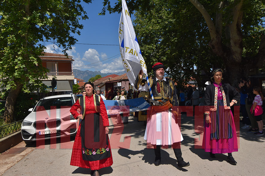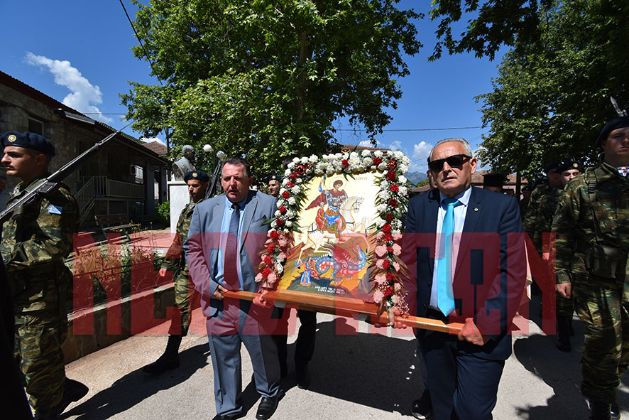 Σήμερα το πρωί μετά τη δοξολογία στην εκκλησία του χωριού σχηματίστηκε πομπή στη κεφαλή της οποίας βρίσκονταν η εικόνα του Αγίου Γεωργίου. Η πομπή κατέληξε στη πλατεία του Μαυρομματίου όπου μπροστά στο εμβληματικό άγαλμα του αρχιστράτηγου της Ελληνικής Επανάστασης τελέστηκε επιμνημόσυνη δέηση.