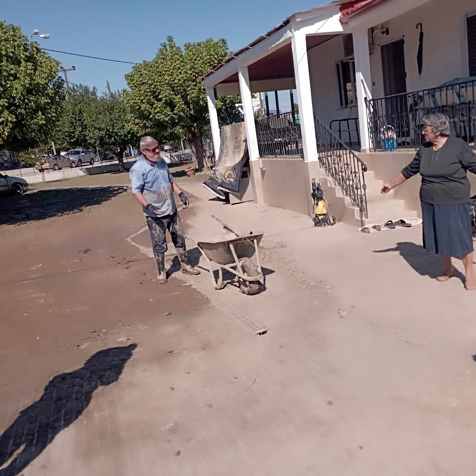 Ανάμεσα σε σπίτια που έχουν καταρρεύσει και άλλα που είναι ακόμα απροσπέλαστα οι κάτοικοι του Ριζοβουνίου βοηθούν ο ένας τον άλλον όπως ακριβώς έκαναν και την τραγική νύχτα του Daniel για να καταφέρουν να σωθούν.