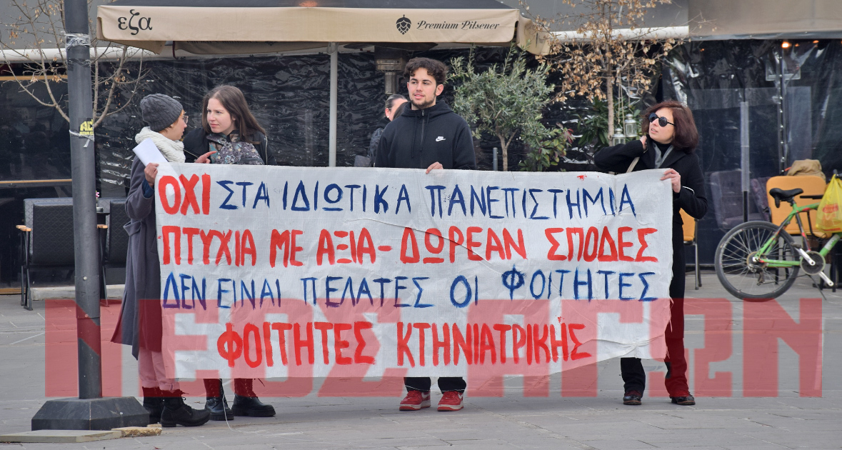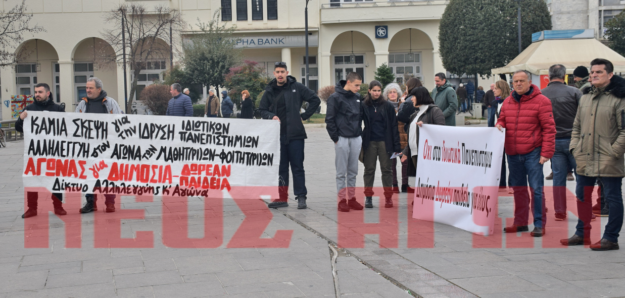 Με το σύνθημα «το σχέδιο εμπορευματοποίησης της εκπαίδευσης δεν θα περάσει», εκπαιδευτικοί και φοιτητές προχώρησαν σε νέα κινητοποίηση σήμερα το μεσημέρι στην κεντρική πλατεία της Καρδίτσας ενάντια στην ίδρυση ιδιωτικών ΑΕΙ.