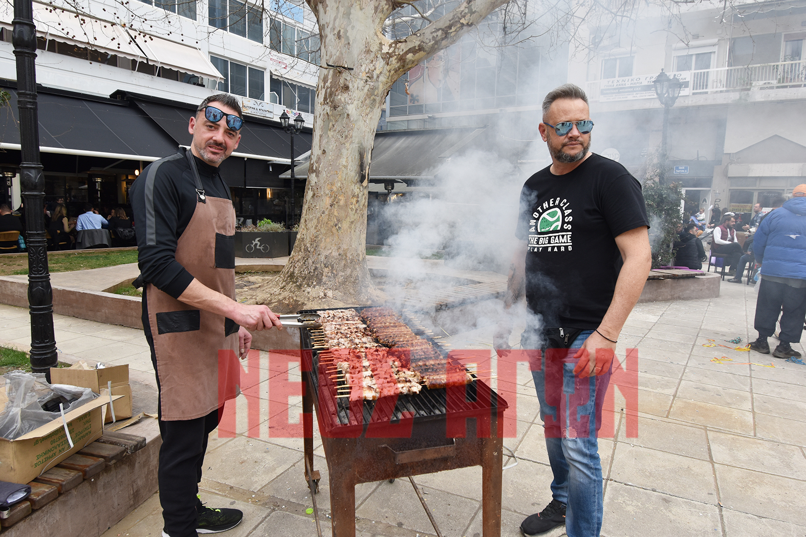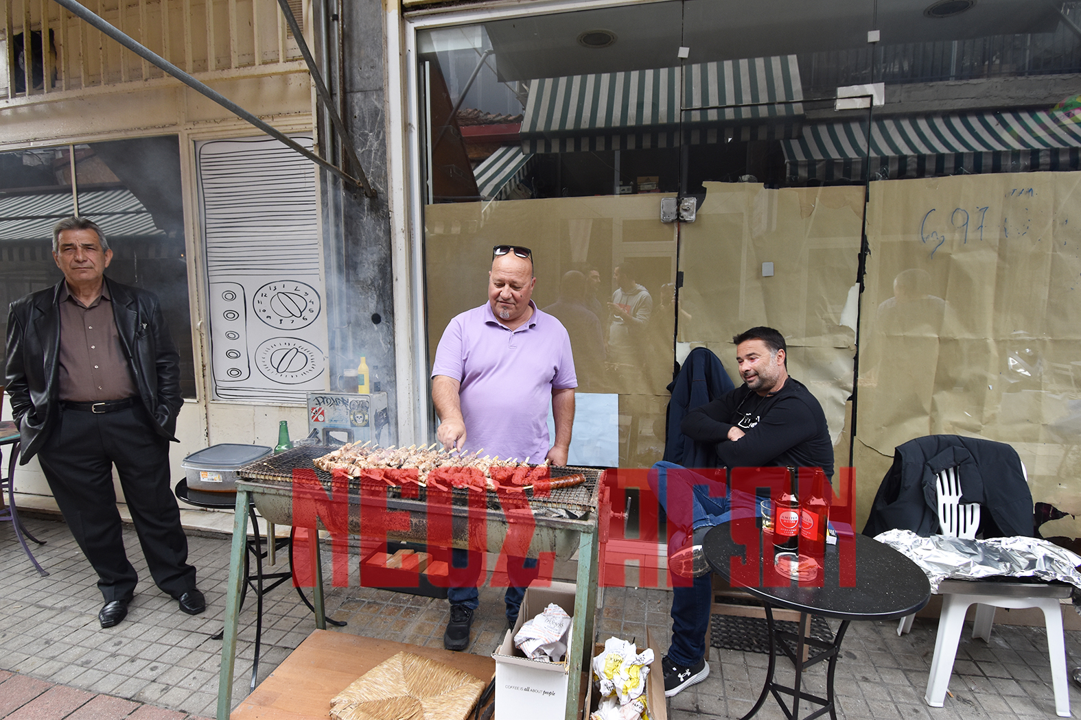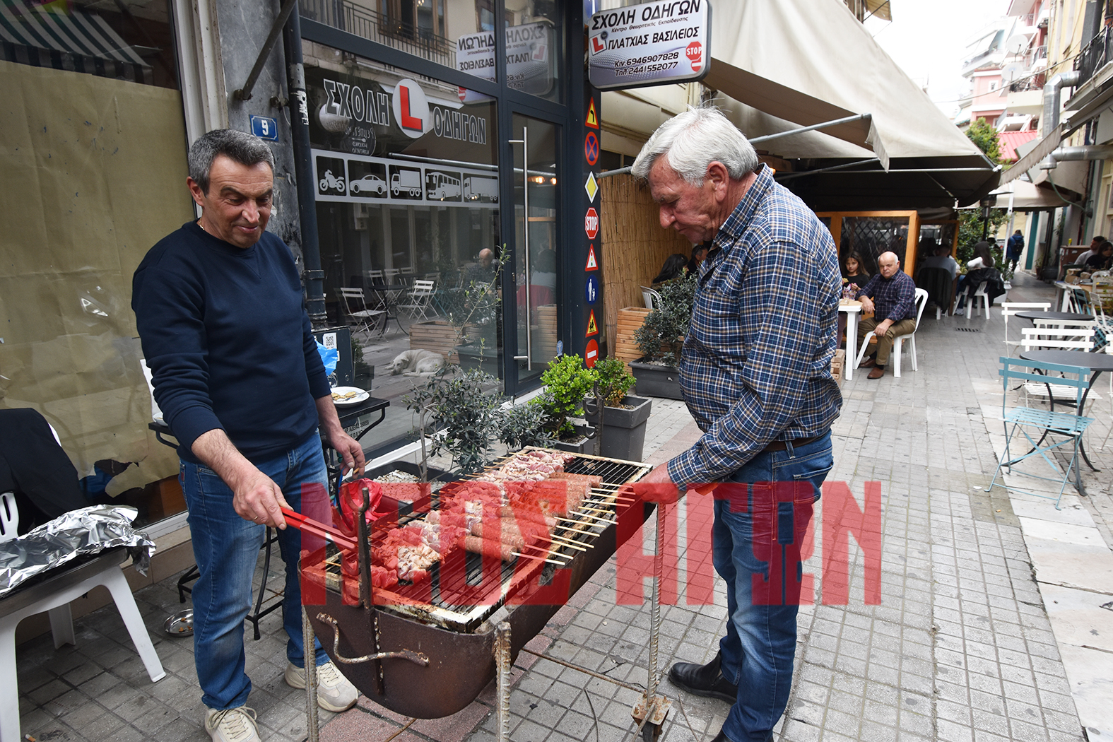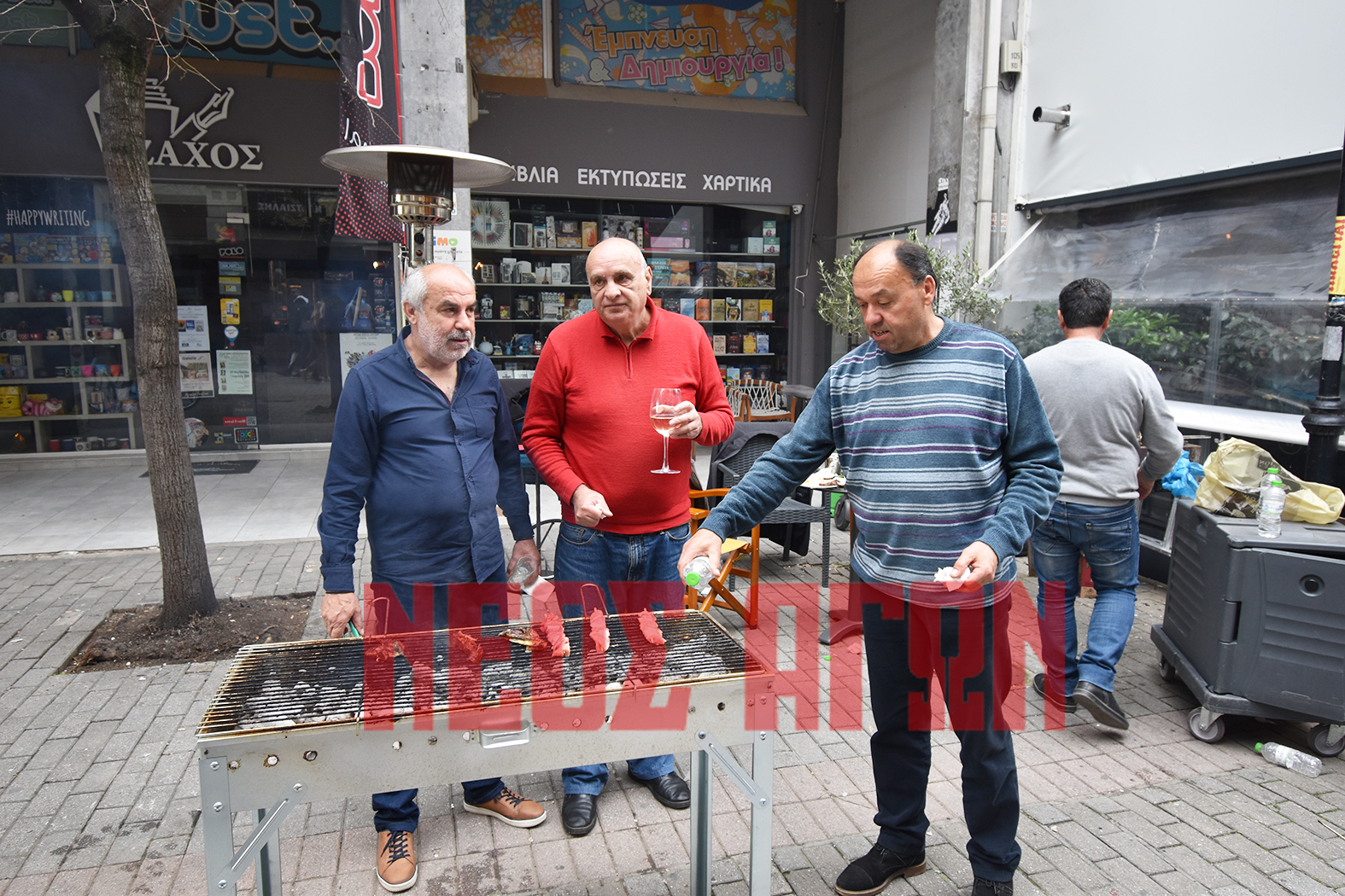 Καφετέριες, ταβέρνες, τσιπουράδικα και διαφόρων ειδών επαγγελματίες άναψαν τα κάρβουνα και τα κρέατα μπήκαν στη σχάρα. Με καλό κρασί, τσίπουρο και ποτά για συνοδεία, θαμώνες και περαστικοί απολαμβάνουν την ημέρα, ξεφεύγοντας από την καθημερινότητα.