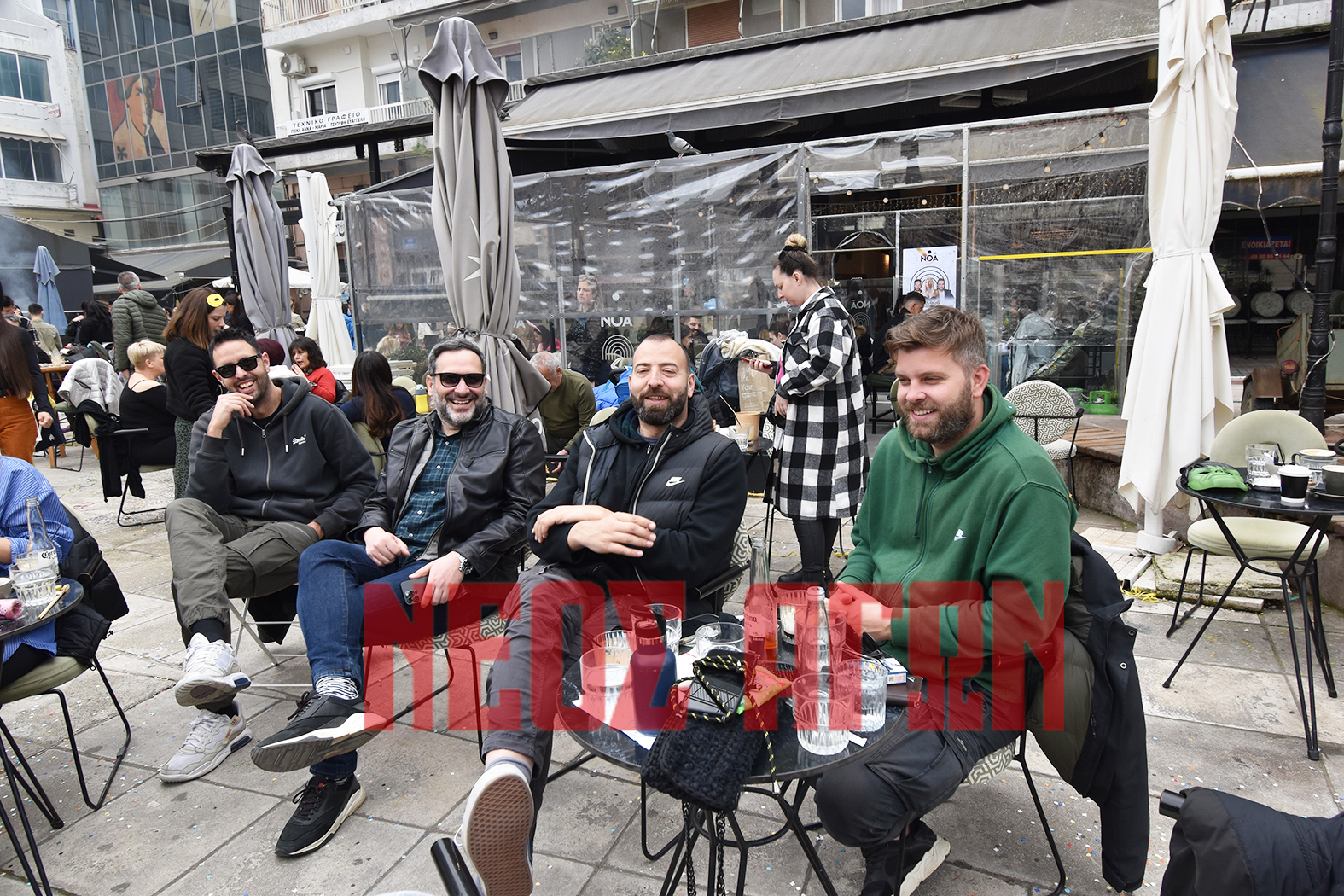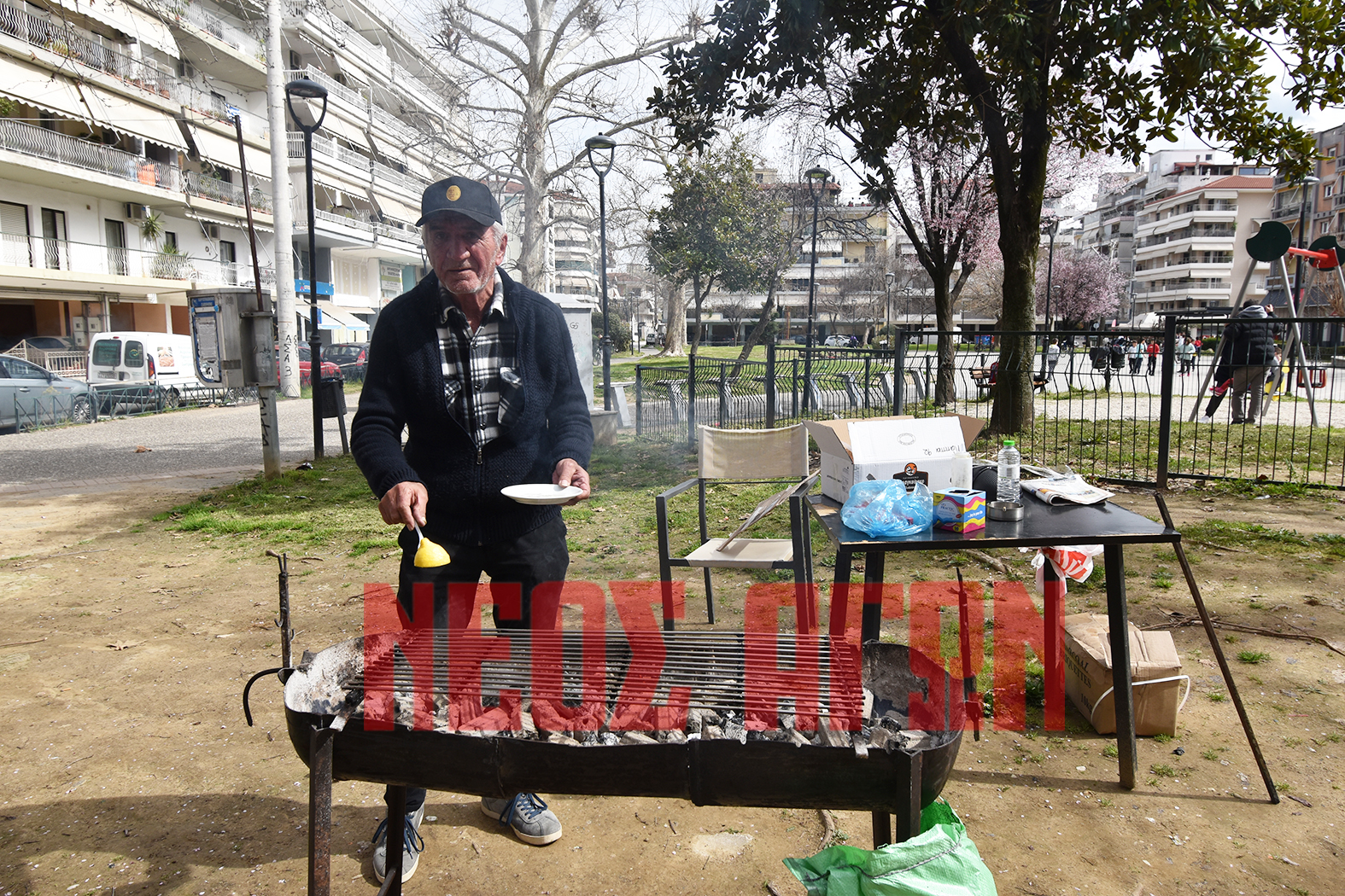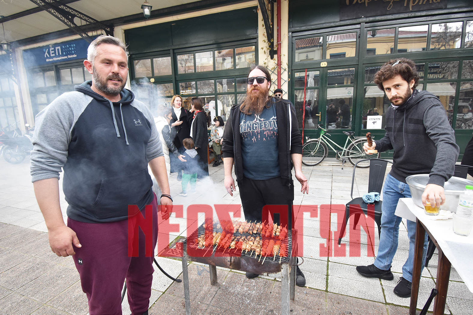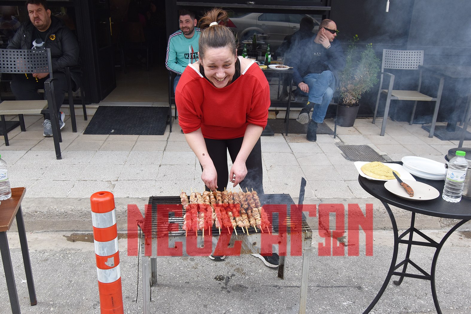 Καφετέριες, ταβέρνες, τσιπουράδικα και διαφόρων ειδών επαγγελματίες άναψαν τα κάρβουνα και τα κρέατα μπήκαν στη σχάρα. Με καλό κρασί, τσίπουρο και ποτά για συνοδεία, θαμώνες και περαστικοί απολαμβάνουν την ημέρα, ξεφεύγοντας από την καθημερινότητα.