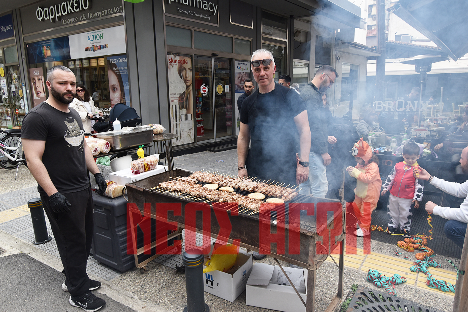 Όπως κατέγραψε ο φακός του Νέου Αγώνα, οι πρώτες ψησταριές άρχισαν να στήνονται από νωρίς το μεσημέρι σε γειτονιές, δρόμους και πεζοδρόμους.