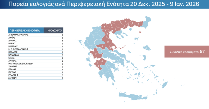 Για την περίοδο αναφοράς 20 Δεκεμβρίου 2025 – 9 Ιανουαρίου 2026 καταγράφηκαν 57 νέα κρούσματα σε 16 περιοχές, βάσει των αποτελεσμάτων των εργαστηριακών ελέγχων. Από αυτά τα 3 καταγραφηκαν στο Νομό Καρδίτσας, ενώ απο την εμφάνιση της ζωονόσου μέχρι σήμερα έχουν καταγραφεί 83 κρούσματα που αφορούσαν 93 εκτροφές.