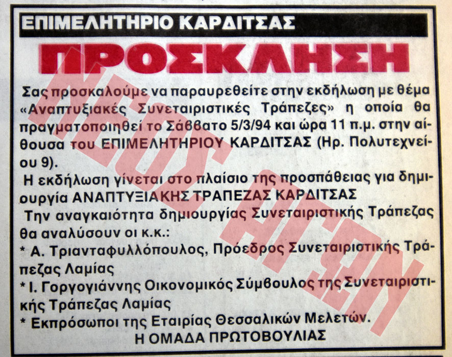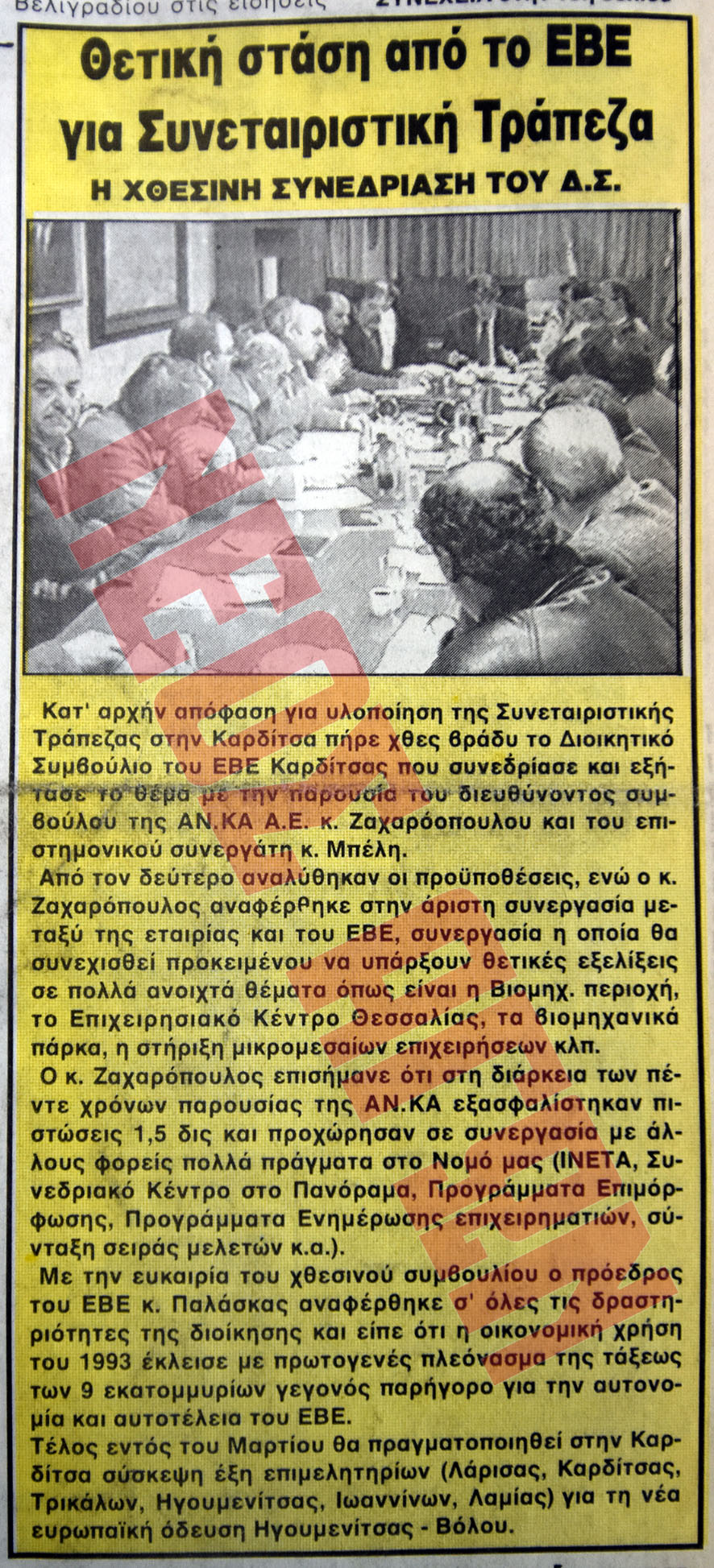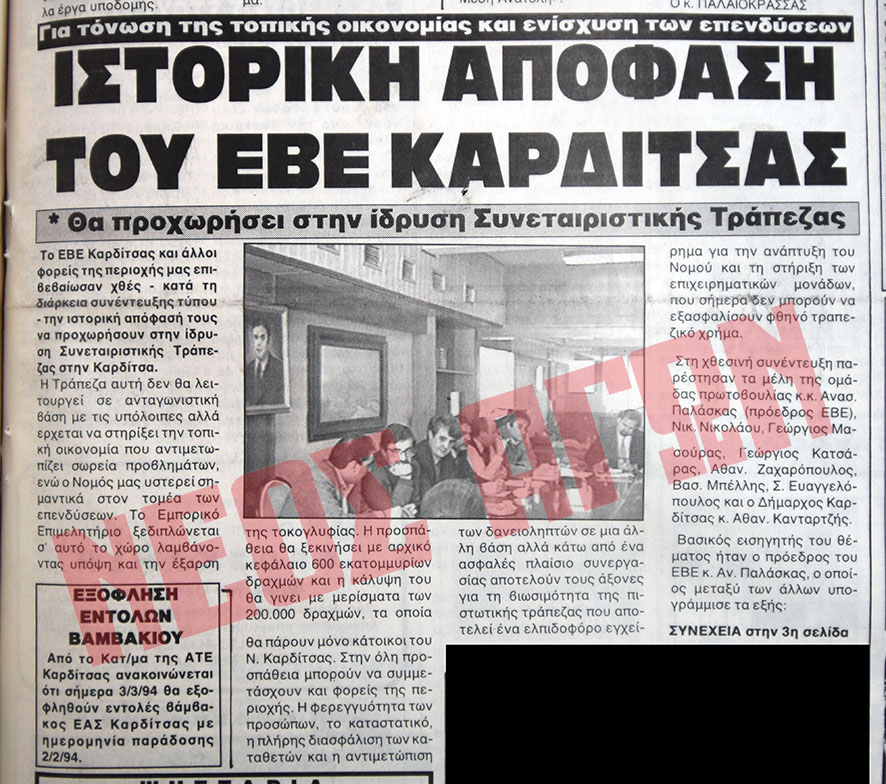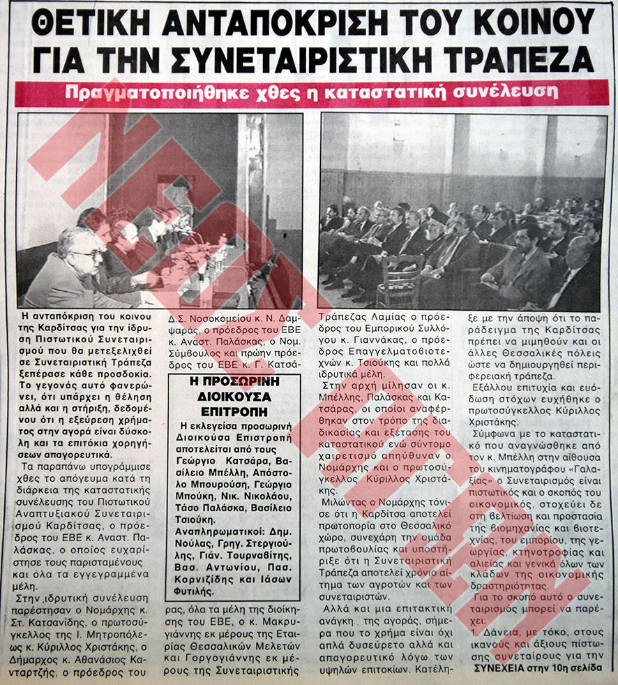 Ενα μήνα μετά αυτός ο Πιστωτικός Συνεταιρισμός ήταν πραγματικότητα και τέσσερα χρόνια αργότερα, το 1998, μετεξελίχθηκε στη Συνεταιριστική Τράπεζα Καρδίτσας.