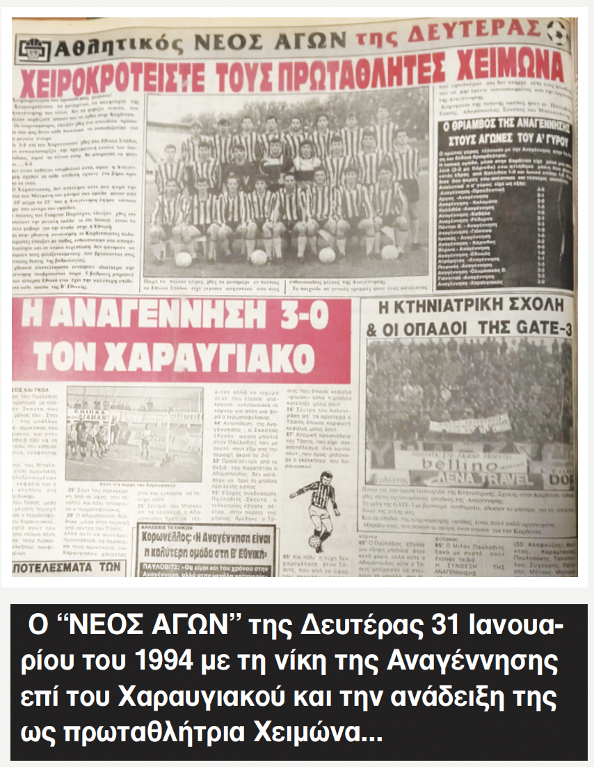 Ήταν μία χειμωνιάτικη Κυριακή, στις 30 Ιανουαρίου του 1994 που το διαχρονικό καμάρι της Καρδίτσας, η χιλιοτραγουδισμένη κι αγαπημένη από γενιές και γενιές συντοπιτών Αναγέννηση, σκαρφάλωνε μόνη στην κορυφή του πρωταθλήματος της δεύτερης εθνικής κατηγορίας και κατακτούσε τον άτυπο τίτλο της πρωταθλήτριας Χειμώνα!