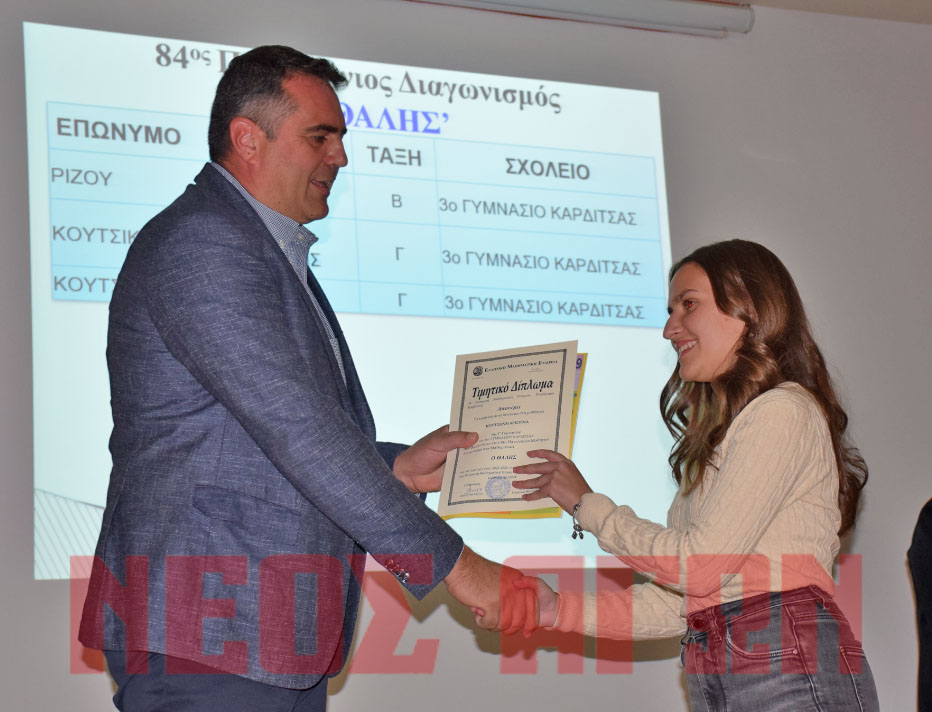 Με χαμόγελα και υπερηφάνεια στα πρόσωπα 160 μικρών… μαθηματικών πραγματοποιήθηκε η εκδήλωση βράβευσής τους από το Παράρτημα Καρδίτσας της Ελληνικής Μαθηματικής Εταιρείας, για τους πανελλήνιους διαγωνισμούς της ΕΜΕ το έτος 2023 – 2024.