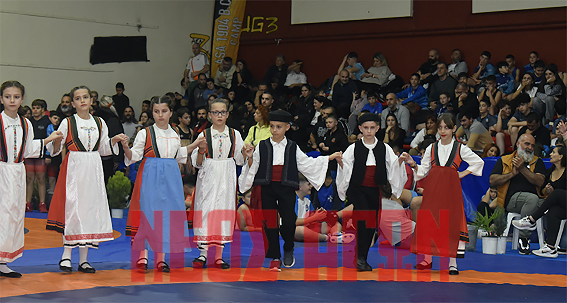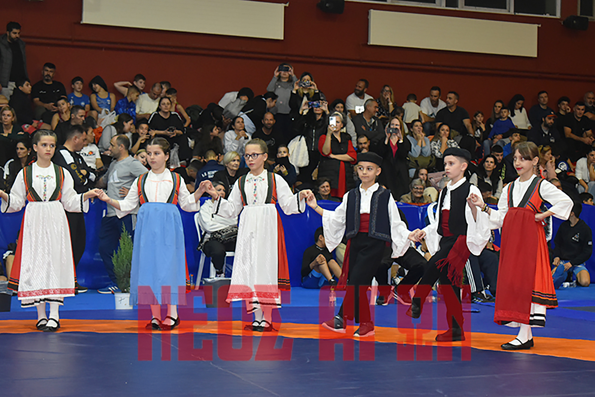 Εκατοντάδες παιδιά, πλημμυρισμένη από κόσμο η εξέδρα, δίνουν ζωή στο κλειστό και ωραίες αθλητικές στιγμές για το διήμερο.