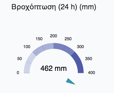Την ίδια ώρα, σύμφωνα με τους μετεωρολογικούς σταθμούς του ΤΟΕΒ Ταυρωπού πέριξ της Καρδίτσας, σε ένα 24ωρο έπεσαν περισσότερα από 300 χιλιοστά, με εκείνον της Καρδιτσομαγούλας να δείχνει 462!