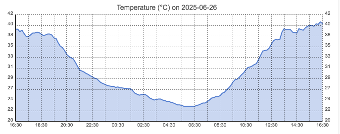 Συγκεκριμένα σύμφωνα με τις μετρήσεις του Εθνικού Αστεροσκοπείου ο υδράργυρος έφθασε στους 40,5 βαθμούς στις 16: 20 το μεσημέρι.