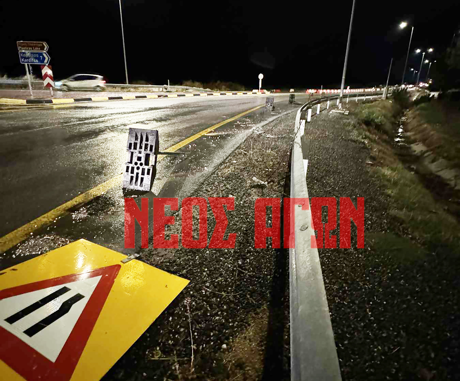 Παράλληλα στο οδόστρωμα έπεσαν πινακίδες και πλαστικά στηθαία από τις εργασίες που εκτελούνται στον οδικό άξονα, με αποτελέσματα να μπλοκάρει προς στιγμή η κυκλοφορία των οχημάτων.