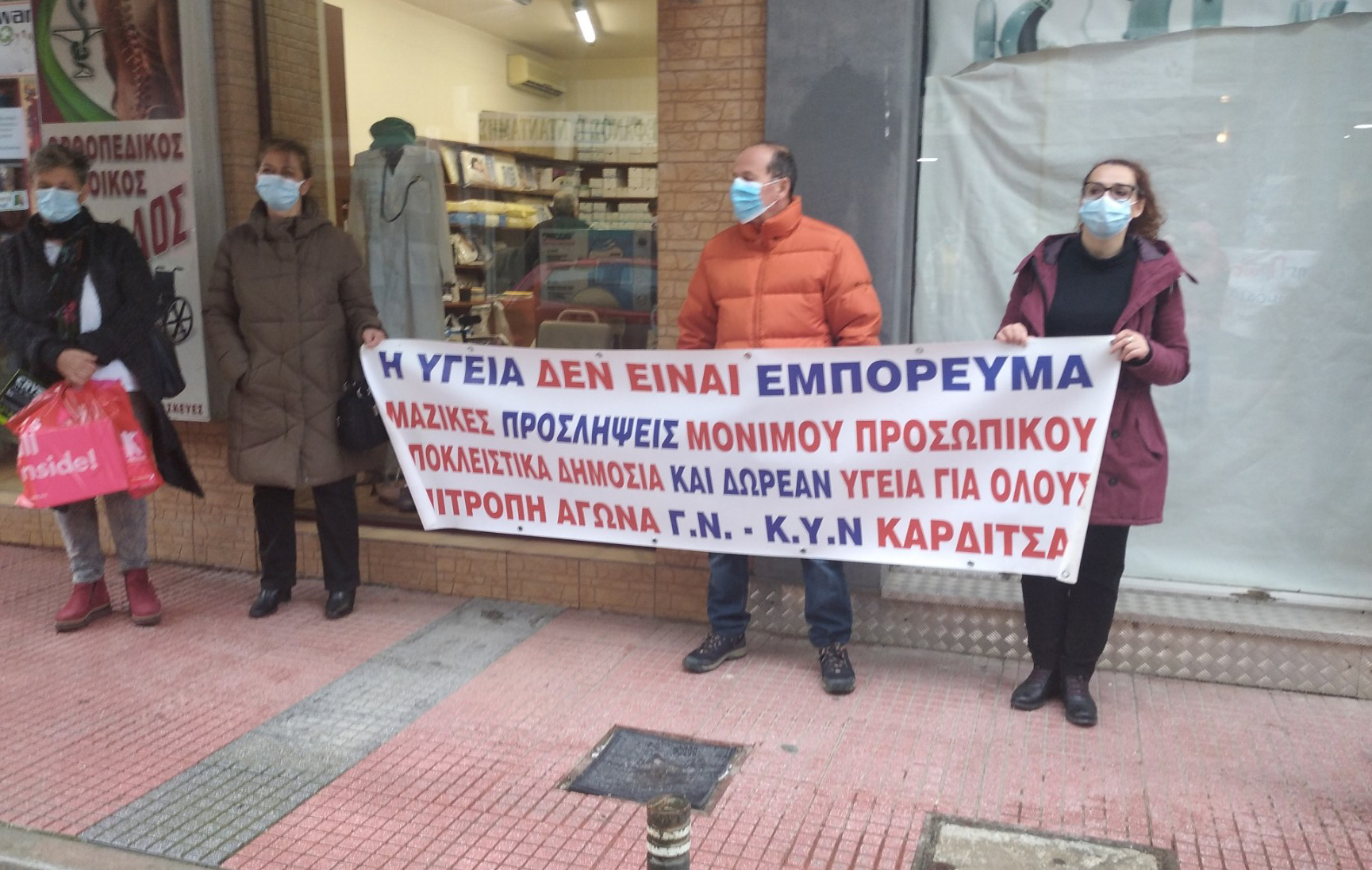 Παράσταση διαμαρτυρίας έξω από το Κέντρο Υγείας Καρδίτσας πραγματοποίησαν το πρωί μέλη της Ένωσης Νοσοκομειακών Γιατρών και Κέντρων Υγείας Ν. Καρδίτσας με συμπαράσταση και άλλων τοπικών φορέων.